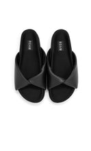 The ‘Demi Twist’ from ROAM is a minimal chic slide with an artful twist in the center of the upper that frames the foot with softly feminine curves. Made from butter soft vegan leather, memory foam is inserted by hand into the upper, creating a pillow effect that gently supports the foot.