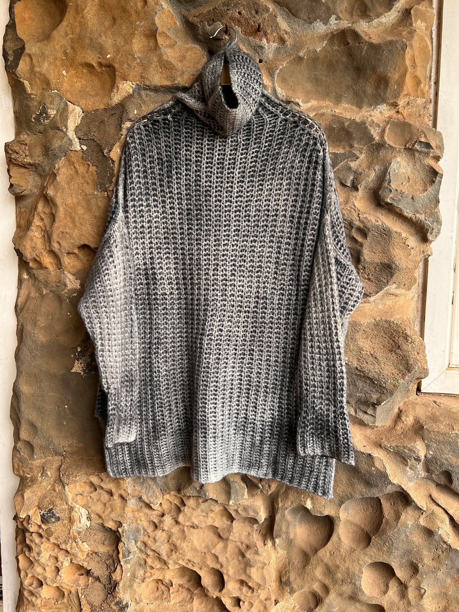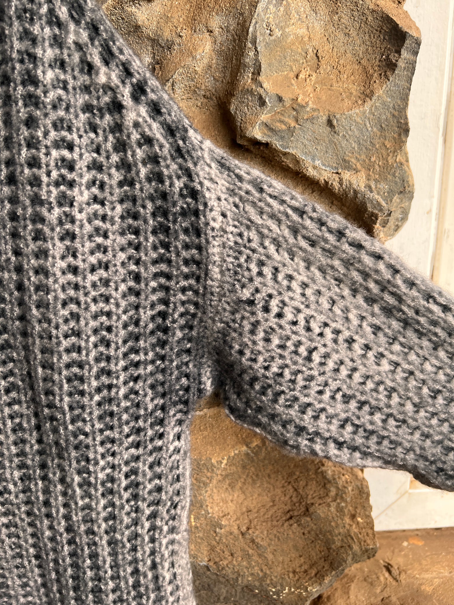 Medium weight, yet airy and soft due to the cob stitch and silk/cashmere combination.