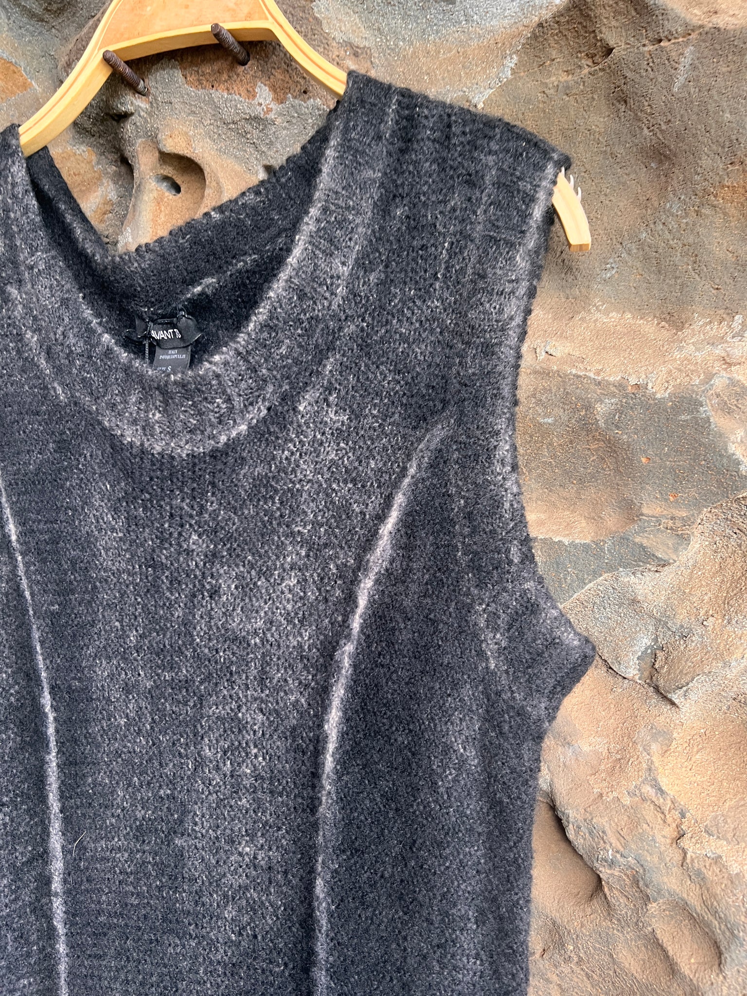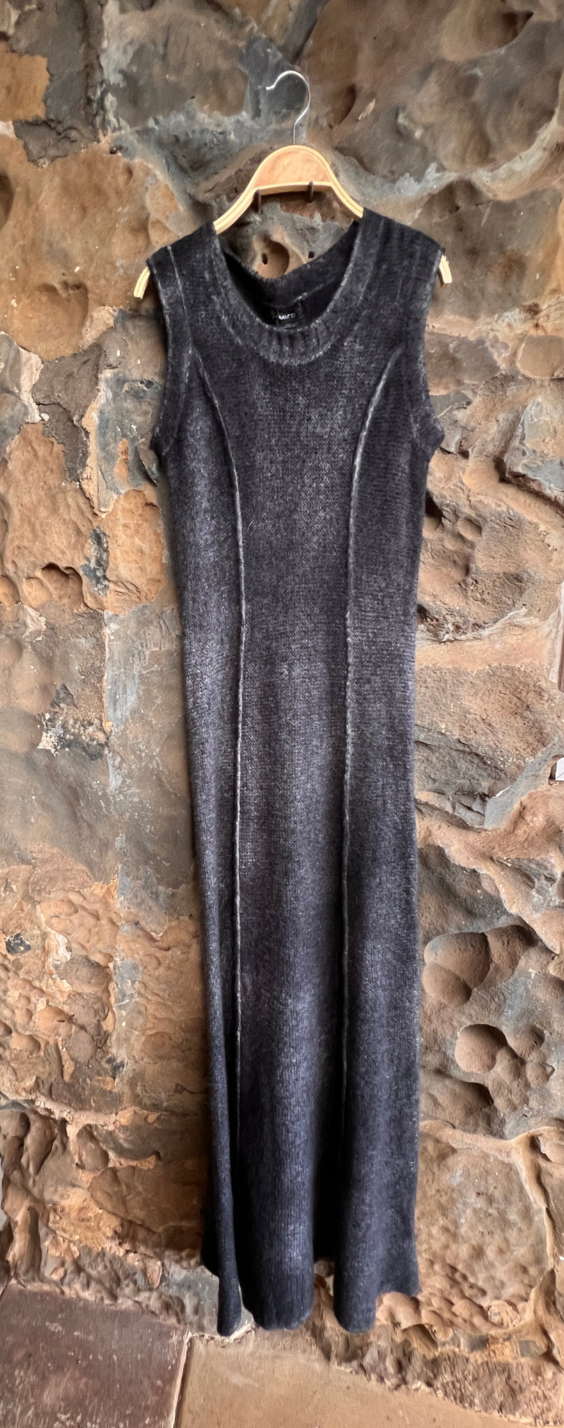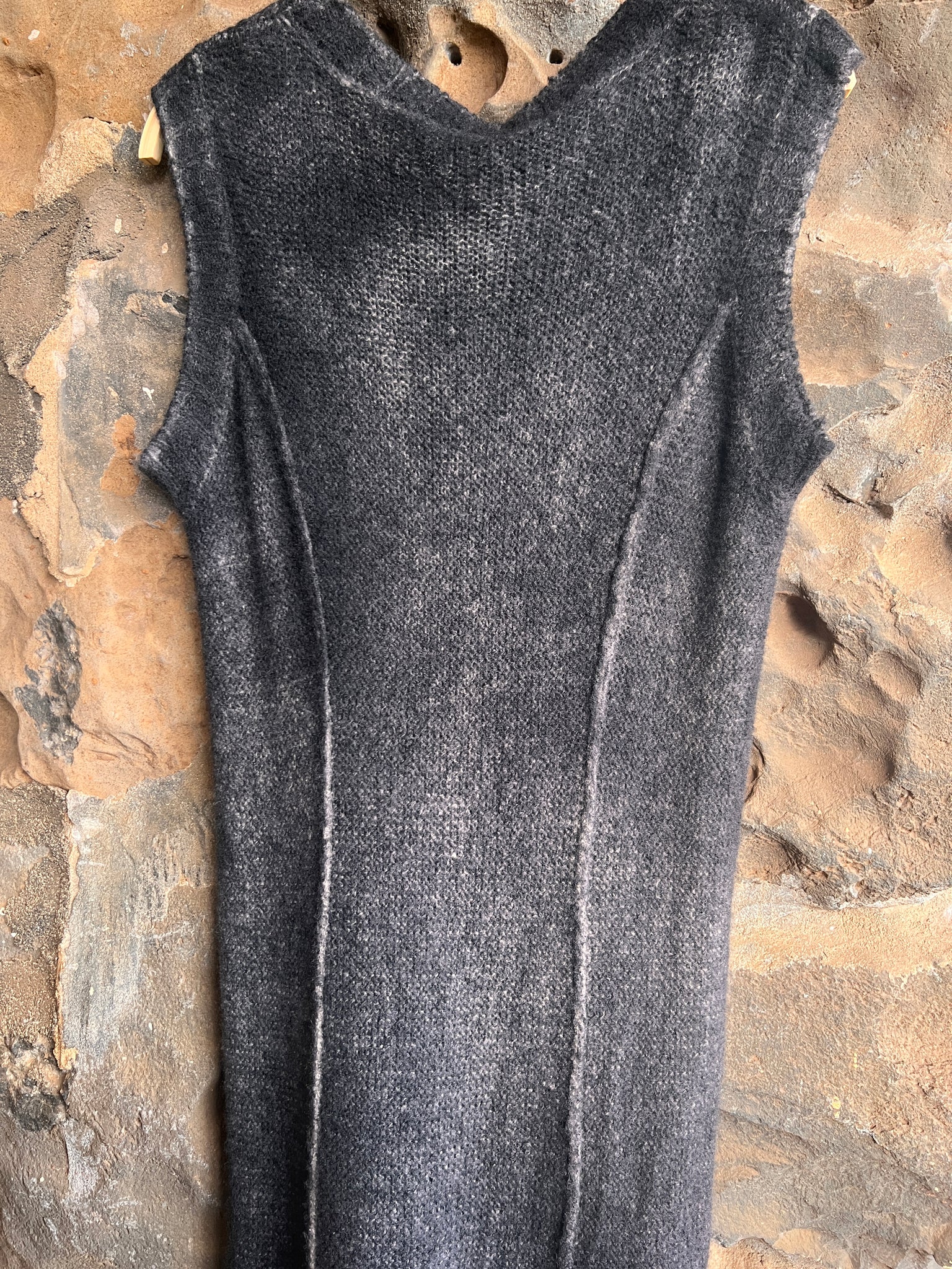 Round neck, cashmere and silk dress with reverse seams running the length of the bodice. Medium weight, body skimming, extremely soft and supple. You will love wearing and touching this dress. Hand painted as only Avant Toi does.