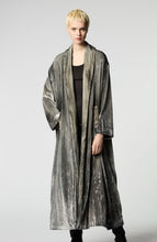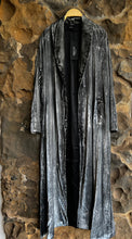 This is a showstopper! Buttery soft, silk velvet shines in this incredibly luxurious duster. The perfect topper to your holiday outfit or could as easily pair with some jeans. You decide... but know you will be stopped when you wear this! It's as if it's been dripped in diamond sparkles. Drop shoulders, open lapel. Another beautiful piece of wearable art from the mastery that is Avant Toi.