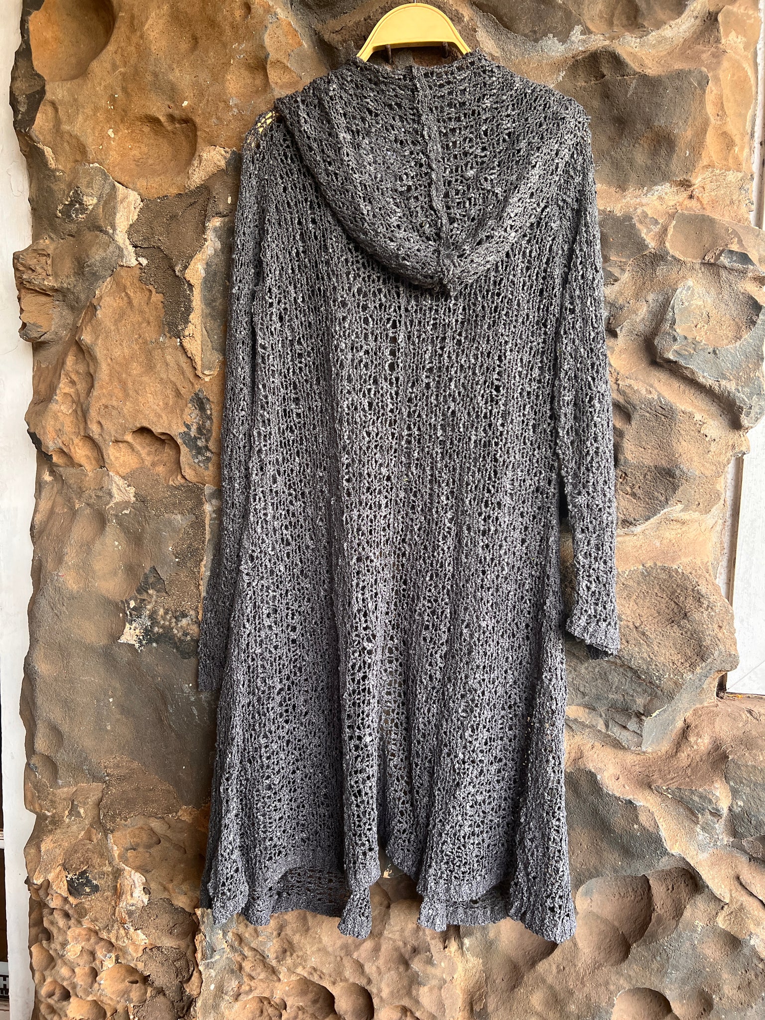 Loose weave in soft acrylic. Has single closure and hood. One size fits most.