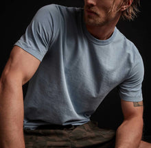 Short sleeve crew with binded neck. Lightweight Jersey is an extremely soft knit made by specially treating the cotton fibers before they are spun into a yarn. This fabric breathes well and has a nice