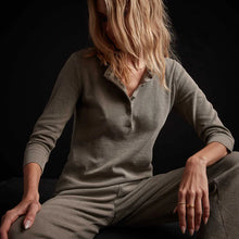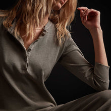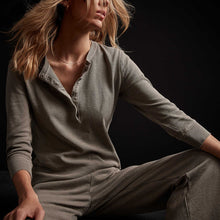This 3/4 Sleeve Thermal Knit Henley is made in a slub thermal mesh. Style details include a crew neckline with rib trim, button front placket, 3/4 sleeves with rib trim at cuffs and overlocked bottom hem. Garment dyed.
