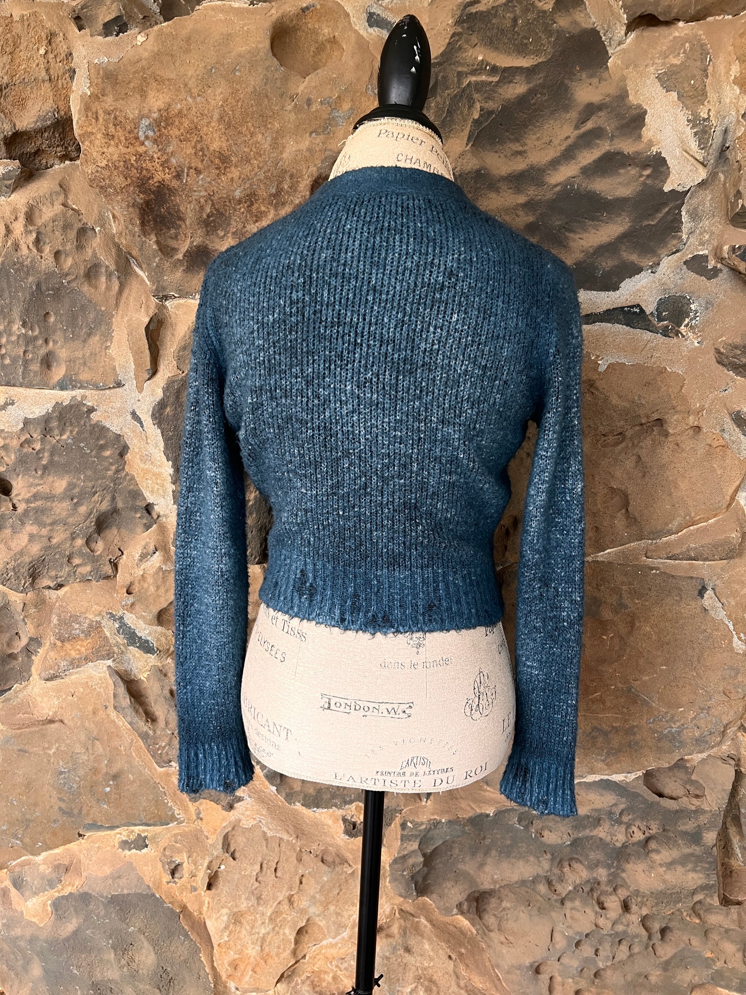 Avant toi’s hand painted cotton has the feel of cashmere due to the manner of brushing that Avant Toi has perfected. This version is cropped for a shorter length but still has the iconic “destroyed” edges that Avant Toi is known for. Slightly more fitted than their boxy sweaters.