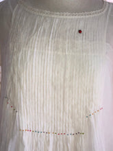 Pleating on the front with a rainbow hue of hand sewed threads. Hand woven 50% Cotton and 50% Silk