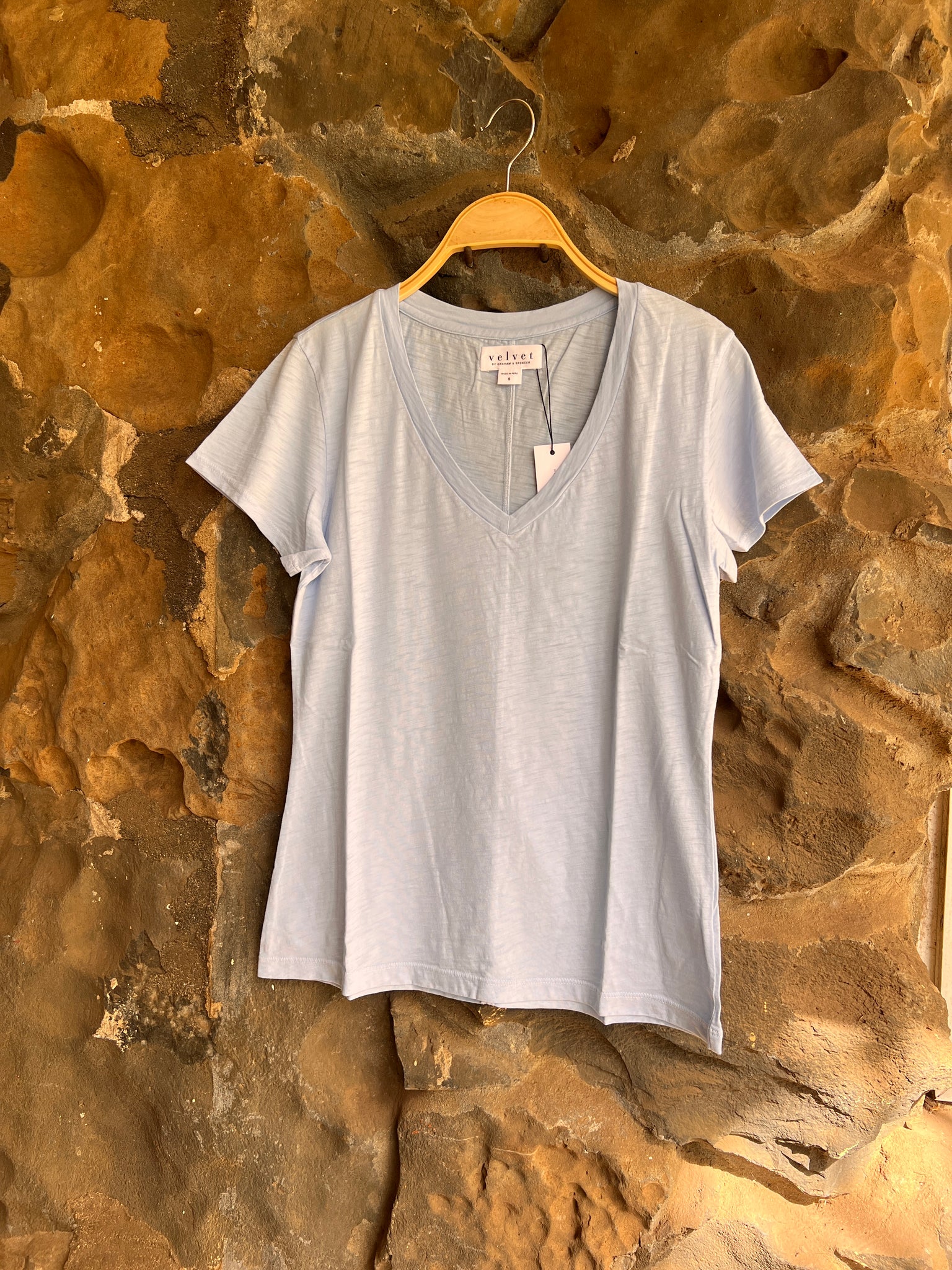 This V-neck tee will be on heavy rotation. Made from luxurious cotton slub, it offers exceptional softness, easy care, and a flattering fit. With short sleeves and a banded neckline, this tee is a versatile addition to your wardrobe.