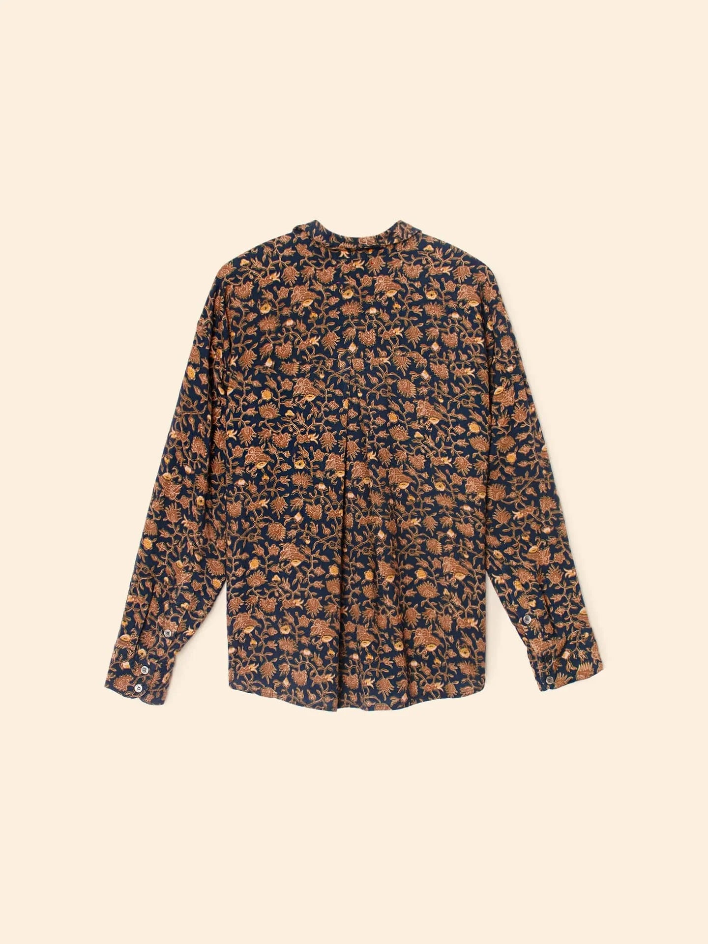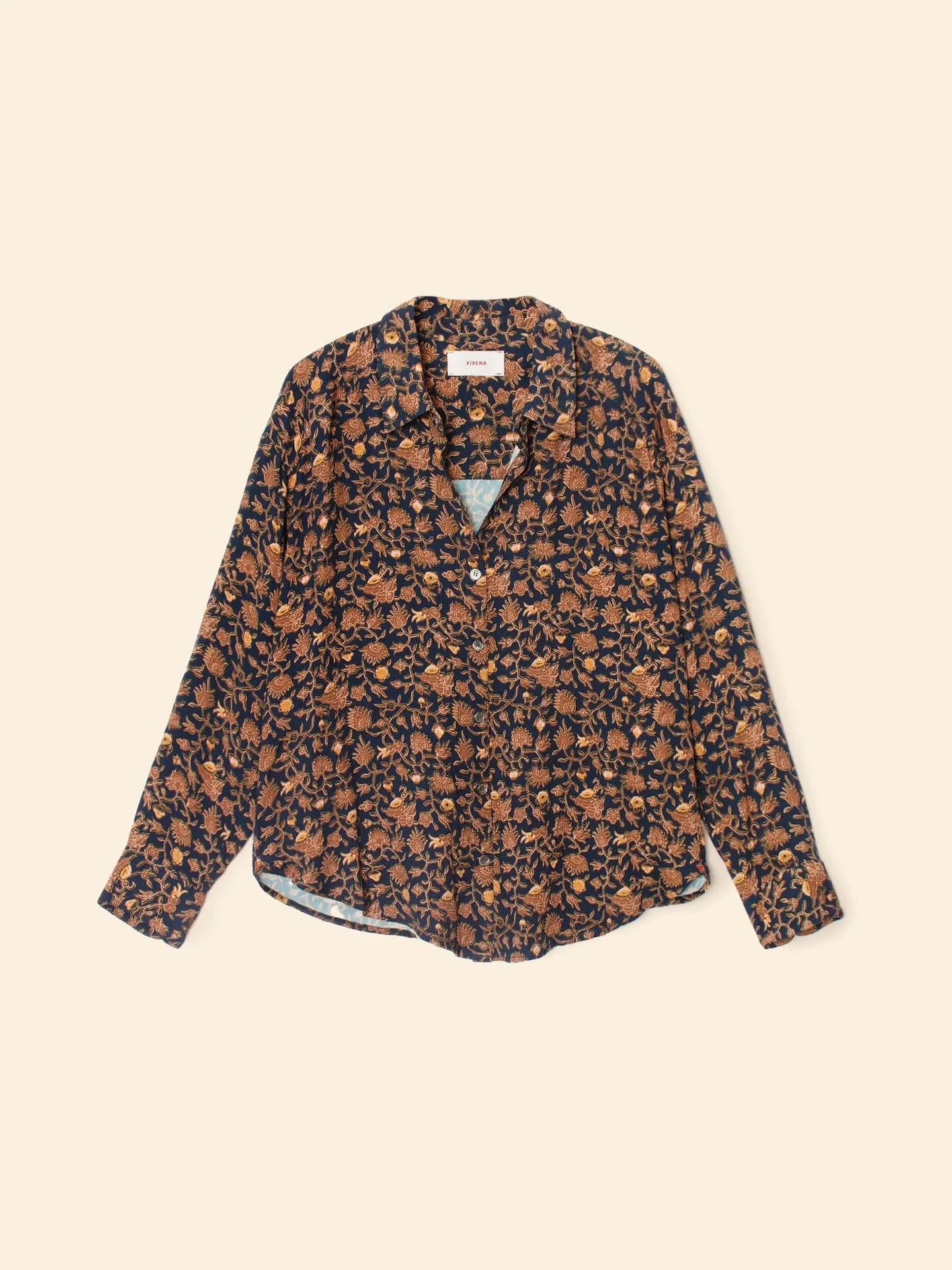 Flower Power. Jace is updated this season in our enchanting floral printed rayon. Jace is an easy button-front shirt with a boxy fit, high-low shirttail hem, and a box pleat back yoke.