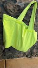 Hand Dyed Canvas with contrasting neon reinforced piping on the interior.