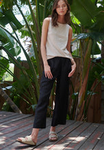 The perfect pant. Crafted from a lightweight linen woven, these pull-on trousers have an elastic waist, a relaxed leg with a slight ankle crop, and the perfect ease of a gorgeous summer day.